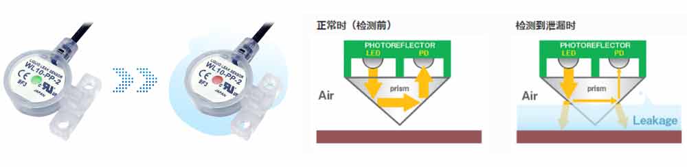 漏液传感器无需遮光板实现高灵敏度。 无需放大器不受检测位置影响.