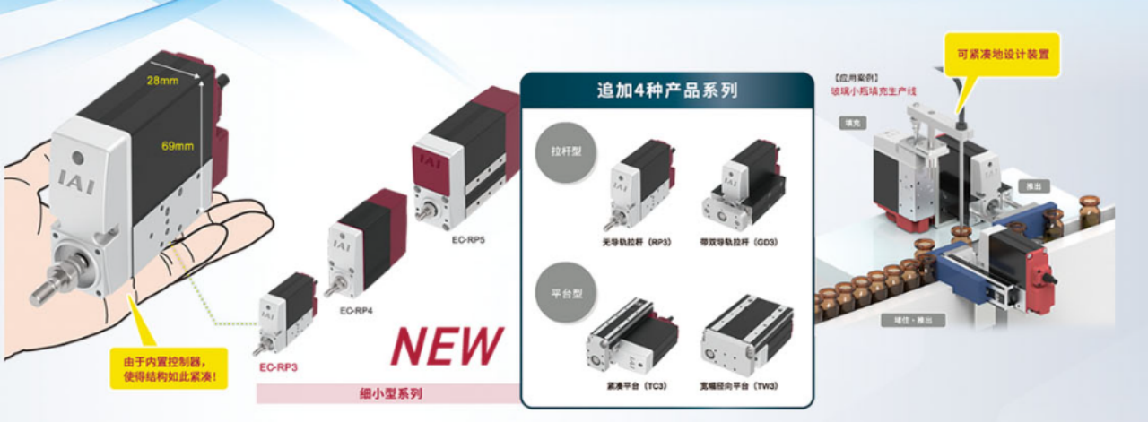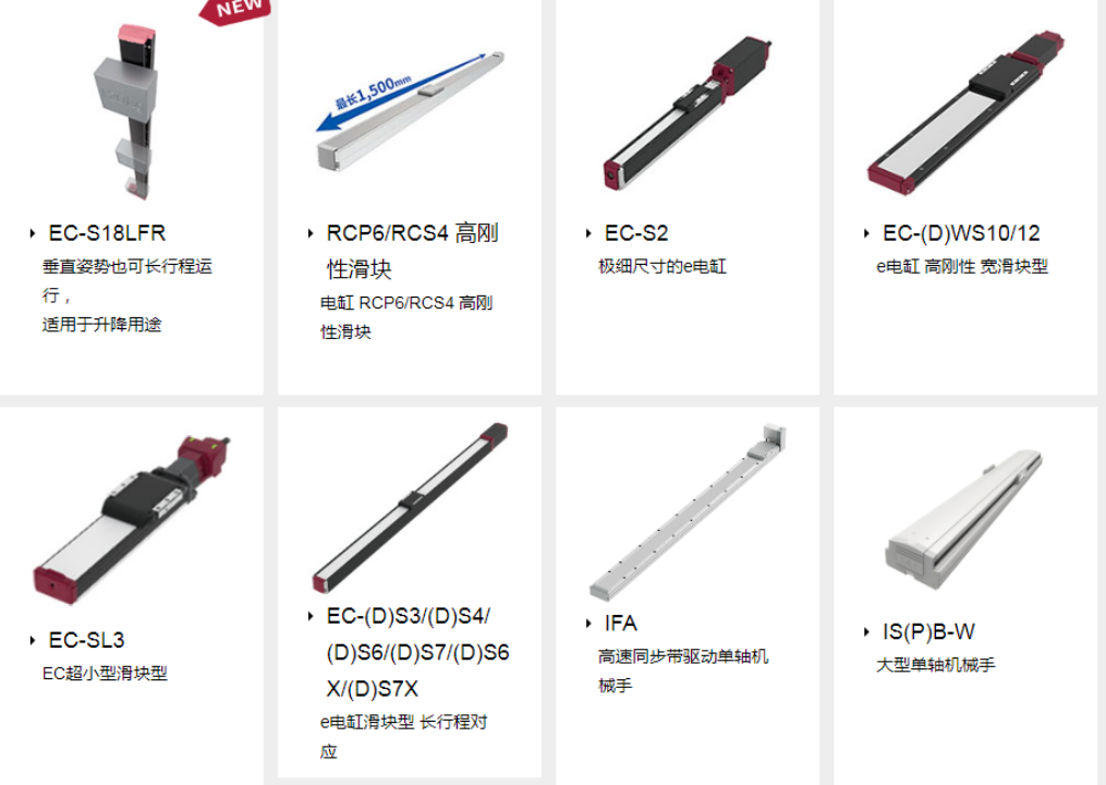 IAI机械手产品阵容拥有电缸、单轴机械手、直角坐标机械手、滑动式机械手、水平多关节机械手、线性伺服机械手等丰富产品,因此客户可以根据自己的需求选择最合适的机械手。